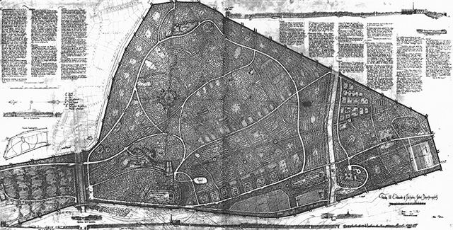 En 1915, Asplund y Lewerentz ganaron conjuntamente el concurso para el Cementerio del Bosque en Enskede, situado a las afueras de Estocolmo, un proyecto que seguiría requiriendo su atención buena parte de los veinticinco años siguientes. Las primeras propuestas para el cementerio tenían un estilo irregular con caminos curvos, arboledas y montículos trazados en el bosque de pinos. Parte de la inspiración provenía de las pinturas paisajistas del romanticismo alemán, como las desoladas vistas de Gaspar David Friedrich. Pero a comienzos de la década de 1920, Lewerent alteró su estilo paisajista para incorporar un propileo, un grandioso eje, una necrópolis y una serie de espacios al aire libre definidos por plantaciones regulares. Las intenciones que había tras el paisaje cada vez estaban más relacionadas con el estudio de la antigüedad clásica, que él y Asplund estaban realizando, y se puede apreciar la influencia de diversos conjuntos antiguos como la villa Adriana o, posiblemente, las ruinas el Foro romano. Pero el conjunto también estaba guiado por esos temas míticos subyacentes que tienen que ver con la transición entre la vida y la muerte. La procesión del enterramiento, la redención, y la transubstanciación de elementos naturales como el agua y la luz. También había ecos de túmulos funerarios nórdicos y del recorrido de jesús hasta el calvario. Entre los dibujos, había uno de una cruz de piedra, grande y austera, que debía verse recortada contra el cielo. Esto era el paisaje en su modalidad trágica.