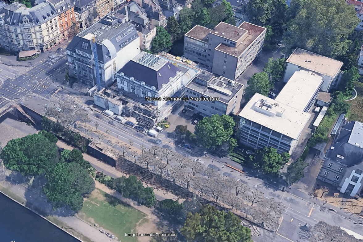 La idea de crear un Museo de Arquitectura en Alemania que albergase los modelos más significativos de la arquitectura nacional, ya estaba presente en los años anteriores a la I Guerra Mundial, pero ésta no se pudo convertir en realidad, con una idea diferente hasta 1979. El Museo Alemán de Arquitectura se encuentra en una villa de finales del siglo XIX, que se reahabilitó para su nuevo uso en la década de 1980 por el arquitecto Oswald Mathias Ungers. Él se encargó de transformar dicho edificio en el museo actual. Este edificio que cuenta con una fachada adornada por columnas jónicas que miran hacia el río Main, fue totalmente modificadopero sin perder el estilo neoclásico que tenía, ya que se restauró y vació por dentro para colocar “un edificio dentro de un edificio”.