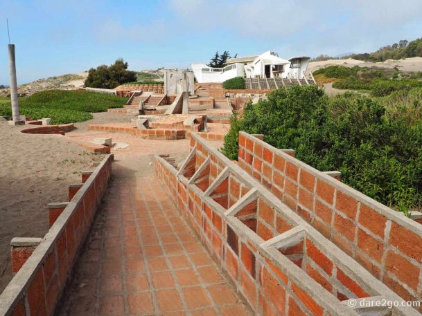 La Ciudad Abierta fue fundada en 1970 por la Facultad de Arquitectura de Valparaíso mediante la creación de la Cooperativa Amereida. Cada edificio se basa en utilizar materiales locales y reciclados, articulados en formas orgánicas y manuales, expansivas y libres, partiendo estrictamente de las actividades y de los gestos, de la espontaneidad y del sentido común, cada una individual y a su vez, integrada en el lugar, buscando siempre un sentido escultórico, poético y singular. Los más destacables son la sala de música (1972-1981), los instrumentos musicales al aire libre, las instalaciones en el paisaje, las ágoras, las casas que se denominan hospederías, los talleres como el de los diseños (1987) y el de los prototipos (1990) y la Casa de los Nombres (1992), actualmente demolida. En la parte más nueva, situada en la colina, se sitúan las casas de los profesores, los restos del Palacio del Alba y del Ocaso (1982), nunca concluido la capilla y el cementerio (1976). Cada una de las intervenciones quiere conciliarse con la presencia sagrada, sublime y extensa del paisaje: por eso se parte de una voluntad de saber mirar el mundo y reflejar sus fenómenos en obras irrepetibles, casi hechas con las manos.