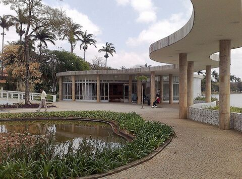 ...Como Louis Kahn, también Lucio Costa intenta mantener vivos los conceptos de la tradición académica dentro de la nueva tradición moderna. Defendiendo la caracterización de los edificios, Lucio Costa manifiesta que la severidad dórica del Ministerio de Educación y Sanidad contrasta con la elegancia y gracia jónica del Pabellón de Brasil y que en Pampulha la sala de baile y restaurante tiene una forma primitiva y femenina, mientras que el casino posee una forma vigorosa y masculina.