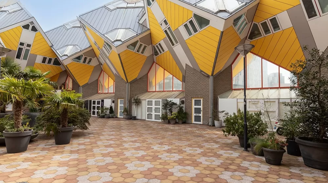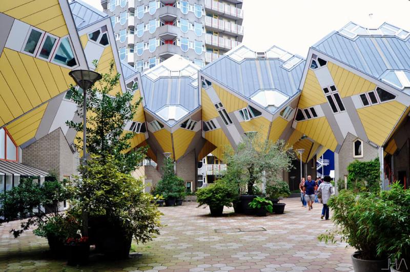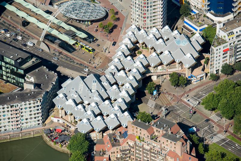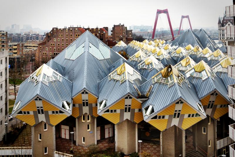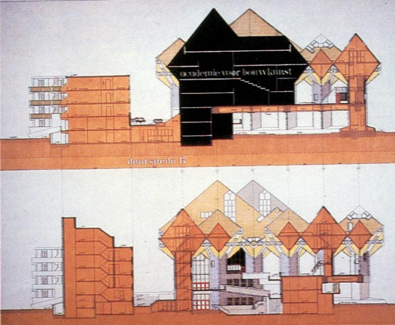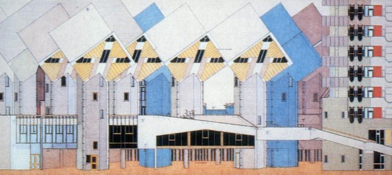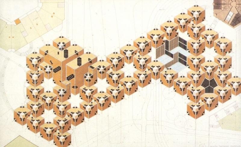 Los estructuralistas holandeses desarrollaron esta idea partiendo de la estructura de mat-building que Piet Blom(1934-1999) había investigado a fondo y que había llevado a las tres dimensiones en un conjunto residencial en altura hecha de módulos colocados de forma romboidal: las Casas Cubo, en Róterdam(1978-1984). En esta misma dirección, Moshe Safdie(1938) propuso un sistema arquitectónico de módulos, que puso en práctica en conjuntos emblemáticos como el Hábitat de Montreal, en Canadá(1967).
