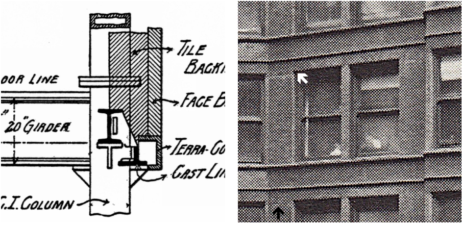 Holabierd & Roche construyen en 1899 el Tacoma Building, utilizando una estructura mixta con algunos muros portantes tanto internos como externos; no hay elementos arquitectónicos que pasen,en fachada, de un piso a otro, pero la gradación de los elementos arquitectónicos en altura se obtiene con una rarificación progresiva de la ornamentación y con una especie de ático con galerías.