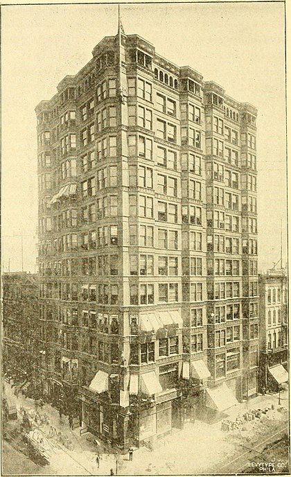 Todo lo que necesitamos decir de la prehistoria del rascacielos es que los altos edificios de oficinas no fueron posibles antes del advenimiento del ascensor (1852) y más particularmente del ascensor eléctrico (inventado por W. Von Siemens en 1880). En 1888-89, en el edificio Pulitzer de Nueva York, se alcanzó una altura de 349 pies (105 m) a pesar de las sólidas paredes de mampostería. Mientras tanto, sin embargo, William Le Baron Jenney (1832-1907) había construido en Chicago, en 1884-85, el Home Insurance Building con una genuina