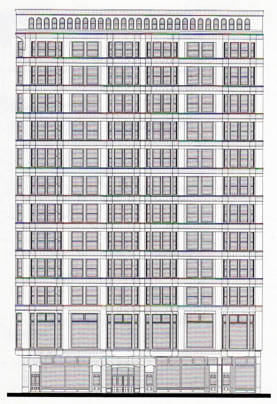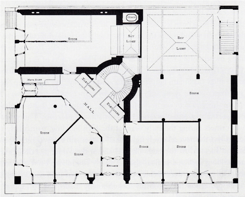 Fue Louis H. Sullivan quien consiguió sintetizar estos dos tipos antitéticos. Si puede decirse que el tipo «palacio, representado por el edificio Auditorium, tenia algún punto débil, era que no reflejaba el programa, pues en realidad todos y cada uno de los pisos tenían la misma función. El tipo representado por el edificio Tacoma adolecía del defecto contrario: la similitud de las funciones si se apreciaba, pero el edificio, al ser una mera sucesión de pisos, carecía de expresión monumental.