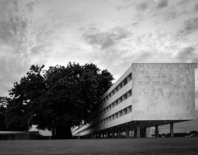 En contraste con el brise-soleil ajustable, juiciosamente aplicado, unos veinte años antes a la fachada norte del ministerio de educación, en Brasilia los paneles quedaban sin protección contra el sol, aunque los revestían cristales absorbentes del calor. Esta indiferencia respecto al clima surgió, al parecer, de un deseo de representar las instituciones del gobierno mediante formas platónicas cuya pureza pudiera ofrecer un acusado contraste con los paneles vidriados y repetitivos que encerraban los ministerios.