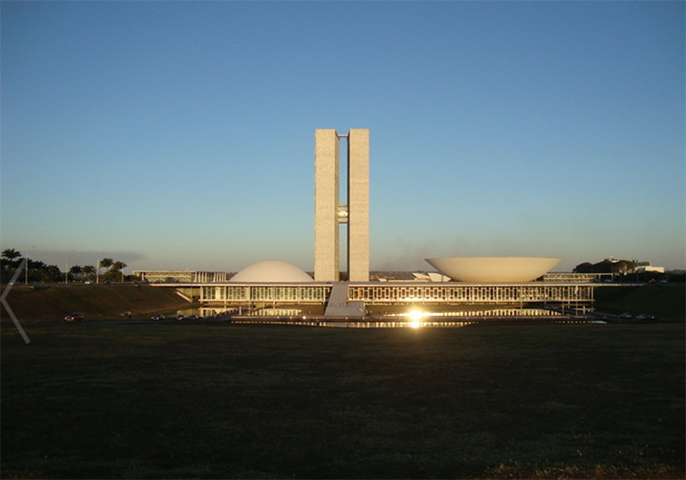 Niemeyer fue muy hábil en el proyecto del conjunto del Congreso: supo definir una forma escultórica que se convirtió en la imagen del Brasil moderno. A su primera idea de gran edificio, con dos torres y dos grandes salas de reunión en cada extremo, le introdujo el cambio de rebajar la cota, de manera que la cubierta coincidiera con el nivel de la explanada, destacando las torres gemelas y surgiendo dos semiesferas en posiciones distintas. De esta manera, el Congreso está estudiado desde la visión lejana y monumental, como gran figura en el fondo urbano y paisajístico y, a la vez, como precioso edificio, liviano y lleno de transparencias a la escala humana de quien accede a él. Es una obra maestra por sus auténticos espacios modernos y cinemáticos: sus vestíbulos, foyersy salas, hechos de transparencias y reflejos, pensados desde la escala de los visitantes que, a través de grandes paños de vidrio, atraviesan recintos, debajo de lucernarios, sobre suelos relucientes, junto a patios recubiertos de cerámica policroma y vegetación, llenos de naturaleza, luz y energía.