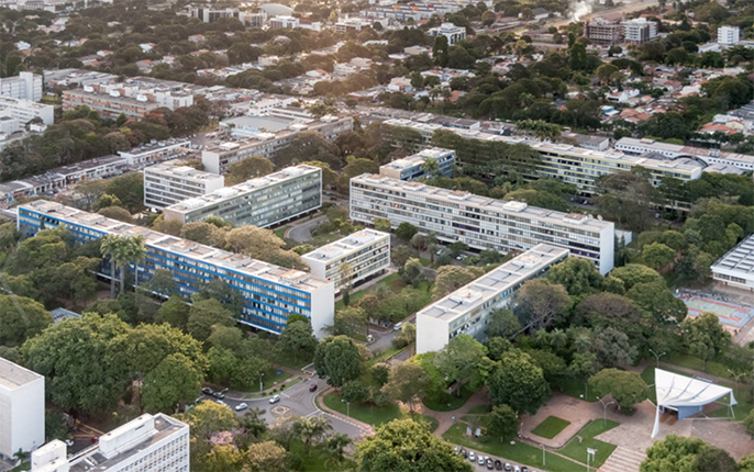 El centro monumental de Brasilia no adopta la forma estricta de campus, sino que tiene una estructura direccional y axial que culmina con el congreso nacional, con sus dos torres simétricas y con las dos partes de esfera —la del senado y la de la cámara de diputados— colocadas de manera contrapuesta. Aunque el centro de gobierno de Brasilia tampoco se ve desde las unidades vecinales, a diferencia del de Chandigarh, situado totalmente al margen, el de Brasilia está presente en el eje central de la ciudad, sobre una gran plataforma orientada hacia el lago. También son dos ciudades distintas en la medida en que Brasilia está casi terminada y es intocable, al estar protegida como patrimonio modélico de la arquitectura moderna, y Chandigarh es una ciudad que sigue creciendo y transformándose.