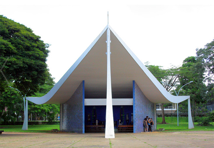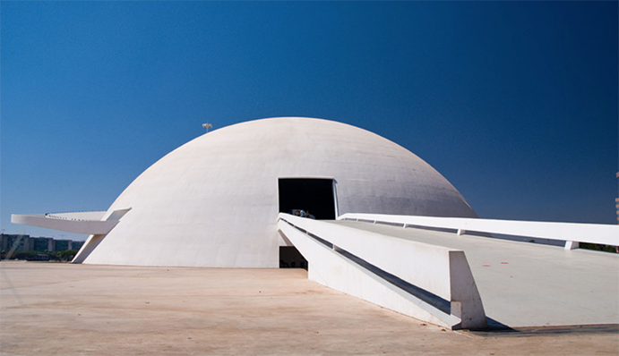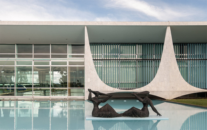 Cuando proyecta los edificios de Brasilia. Niemeyer sigue los mismos criterios. Cada uno de ellos nace de un esbozo formal simplicísimo, incluso elemental el motivo de los paneles alabeados de mármol para el palacio presidencial, de la pared abarquillada para la capilla anexa, de la cúpula derecha para el senado e invertida para la cámara de los diputados, de la corona de pilastras acanaladas para la catedral desarrollado con extremada parquedad de precisiones constructivas.