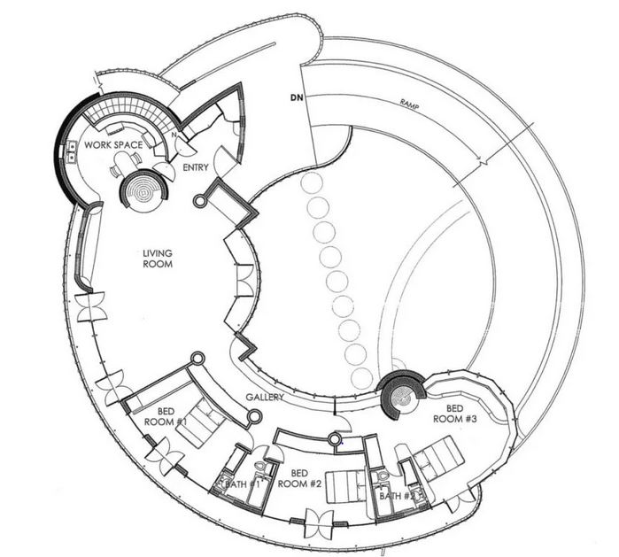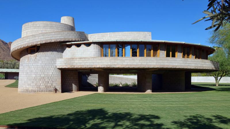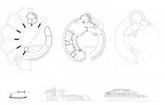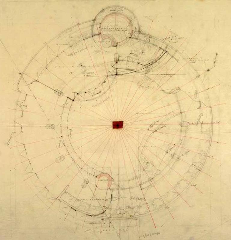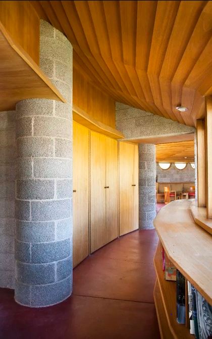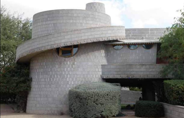 ...Este edificio es el inicio, o por lo menos constituye el mejor ejemplo, de las obras desarrolladas sobre la morfología curvilínea ya citada, que representa otra de las contribuciones de Wright a la arquitectura orgánica. Entre ellas recordaremos la torre-laboratorio del mismo conjunto Johnson, realizada en 1950; la segunda casa Jacobs, construida en 1948 (con primera, de 1937, «Wright creó el primer tipo de casa «usoniana», es decir, la respuesta suburbana o, mejor, rural, a las casas Citrohan de Le Corbusier, racionalistamente urbanas»); la casa para su hijo David de 1952; los almacenes Morris de 1948 que con su espiral interior ya anuncian el célebre Museo Guggenheim, construido entre 1946 y 1959. Hemos apuntado ya la dimensión utópica de estos edificios de trazado curvilineo. Efectivamente, el Johnson Wax Building anticipa en los años treinta la imagen arquitectónica y ambiental que puede encontrarse hoy en algunos centros espaciales, aunque en el lugar de los mecanismos electrónicos Wright maneja sus configuraciones futuristas con acentos de carácter arcaico; pueden encontrarse en diversos lugares referencias a las arquitecturas pre-colombinas y cretense-micénicas. También es utópica, futurista y casi extraterrestre la imagen del Museo Guggenheim, que destaca, extraño, en el contexto de la Quinta Avenida de Nueva York. ...