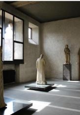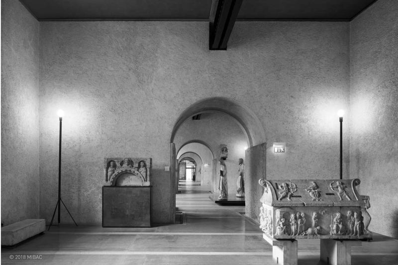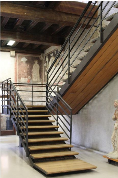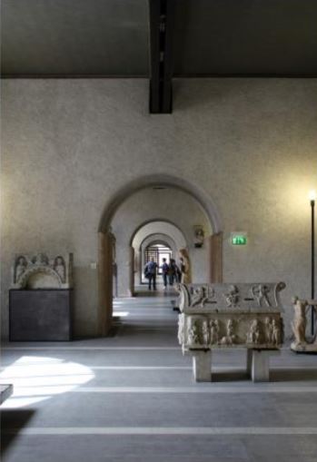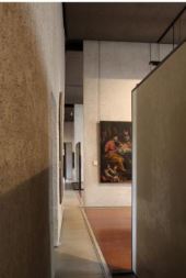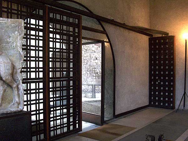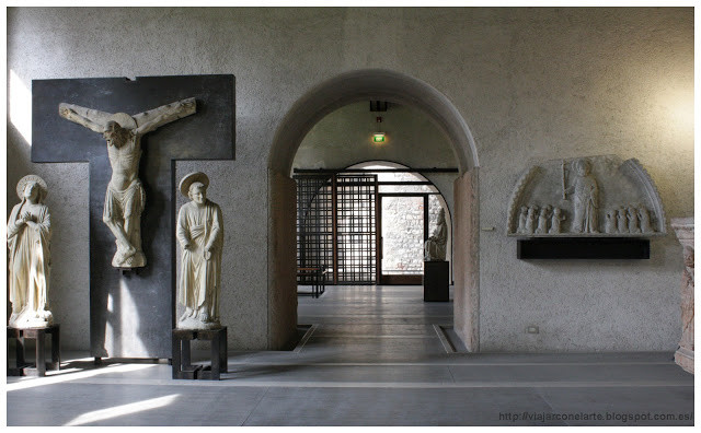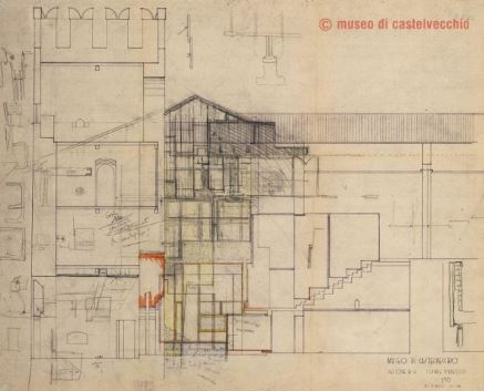 Algo de esto se logró en su transformación del Museo Castelvecchio en Verona (1956-1964), donde los trazados contrapelados de los forjados, los pavimentos y los muros de enfoscado rugoso contribuían a crear un sobrio entorno para las obras de arte, exhibidas sobre pedestales de acero sin tratar diseñados por le propio Scarpa.