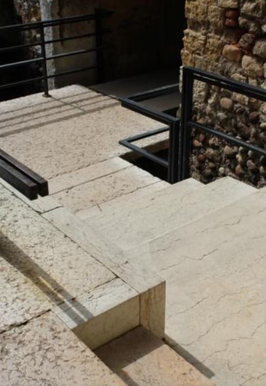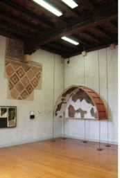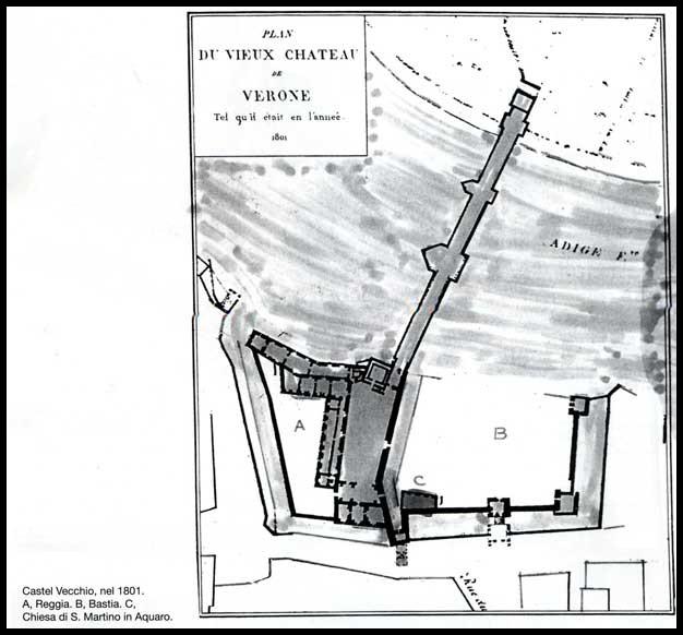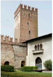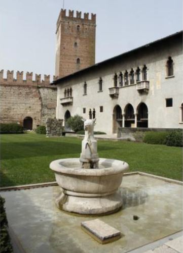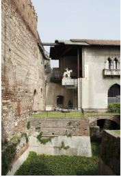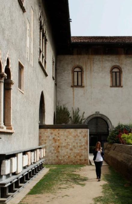 p.43-49." En el marco de la exposición "Da Altichero a Pisanello", en 1957, se encargó a Scarpa restaurar sólo el ala de habitaciones de la antigua fortaleza de Verona. Scarpa no sólo se limitó a los trabajos de rehabilitación, sino que trató de aislar y jacer visibles las diferentes capas históricoas del complejo, poniendo al descubierto algunos elementos y demoliendo determinadas partes. Le interesaba desenmarañar los entrelazamientos de los diversos períodos de construcción, convertir al edificio en el hallazgo arqueológico más importante del museo y poner en evidencia las fases de las sucesivas ampiiaciones, así como los cambios estructurales por medio de un trabajo de restauración adecuado. Mas que la teoría de la restauruación, a Scarpa le interesaba la "claridad histórica", es decir, hacer visible la historia y "darla palabra" a través de la yuxtaposición ordenada de sus fragmentos.