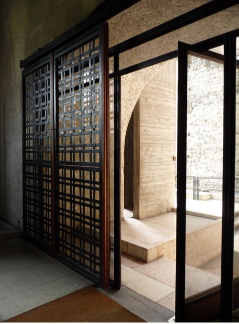 ...Una parte fundamental de su actividad fue la restauración y reutilización de edificios antiguos, y en este campo desarrolló un método de yuxtaposición de niveles y fragmentos nuevos y antiguos que realzaba el significado de ambas cosas y, que hacía que el observador tuviese la sensación de atravesar estratos de tiempo.