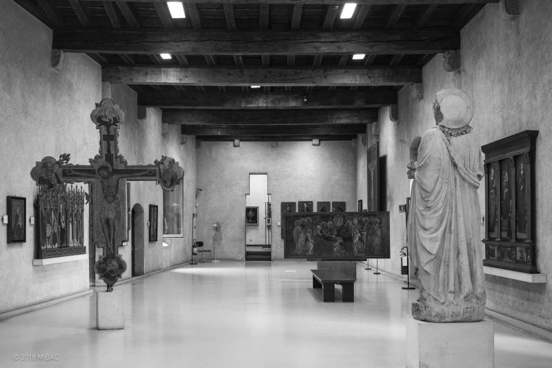 Colocó algunas pinturas sobre caballetes - los mismos que diseñó para el Museo Correr - para incitar al visitante a acercarse a ellas y dedicarle su atención. En otros lugares, una pintura aparece gradualmente, o bien, determinados elementos son destacados por medio de la orientación hacia la luz. Para Scarpa, la arquitectura de museos no sonsiste sólo en albergar obras de arte ni es tampoco una máquina para presentar exposiciones, sino que es uninstrumento crítico que hace perceptibles y comprensible las obras de arte."