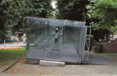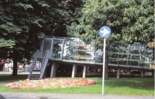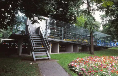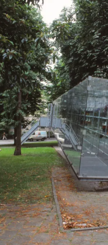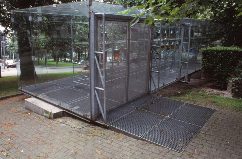 Un ejemplo emblemático son los museos de la ciencia , los de la técnica y los infantiles, en los cuales la forma del espacio y la presencia de la luz natural ya no son definitorios. Si en museos contemporáneos, como el Vitra Design Museum proyectado por Frank Gehry o el Museo de Arte Moderno de Frankfurt proyectado por Hans Hollein, los interiores están caracterizados por espacios fluidos, definidos por la luz natural y por objetos reales y originales, los museos mediáticos consisten en contenedores que concentran la fascinación y atención en torno a los focos desmaterializados de luz artificial, información, experimentación e interacción. Los límites espaciales físicos dejan de percibirse en el interior del contenedor en aras de esta experiencia perceptiva y fenomenológica en torno al ámbito de las imágenes, reproducciones, instalaciones, monitores, dioramas, mecanismos y virtualidades. También el espacio doméstico y los lugares de trabajo pueden entrar dentro de estas coordenadas del espacio mediático, a base de contenedores y sistemas de objetos. Este fenómeno tuvo un claro antecedente en el proyecto de Robert Venturi para el concurso del National College Hall of Fame en New Brunswick( 1967), con la fachada convertida exclusivamente en centelleante pantalla electrónica y con el interior definido por elementos mediáticos: rótulos, neones y anuncios. Un prototipo de esta nueva arquitectura es la Glass Video Gallery en Groningen, proyectada en cristal por Bernard Tschumi (1991).