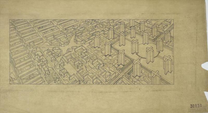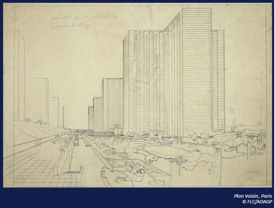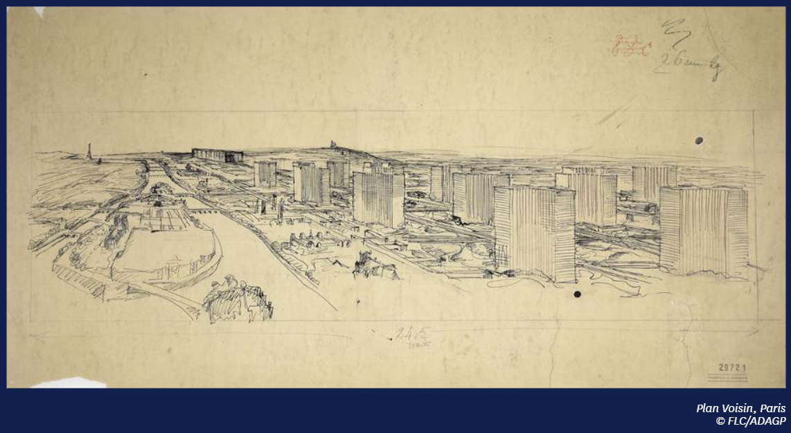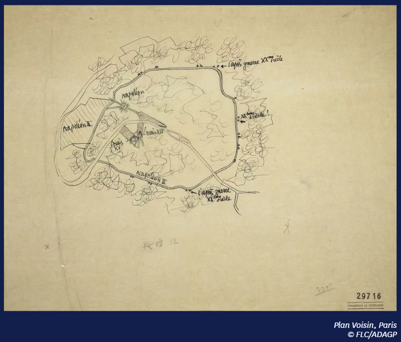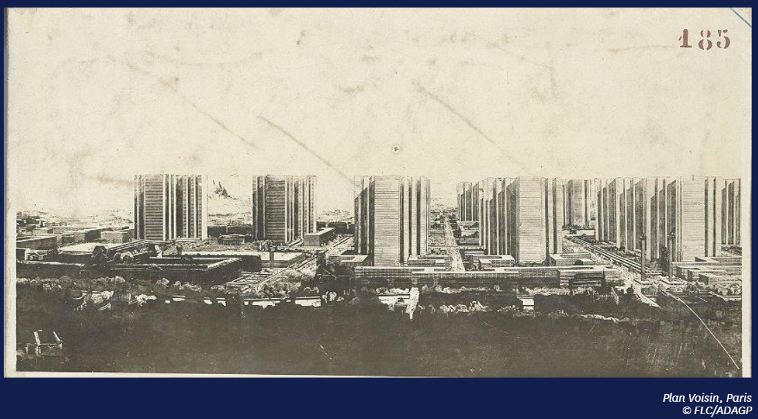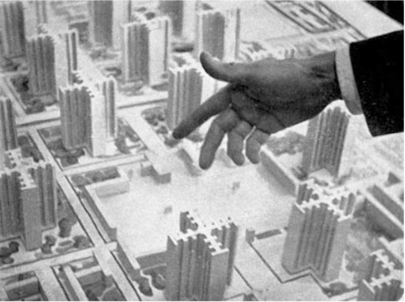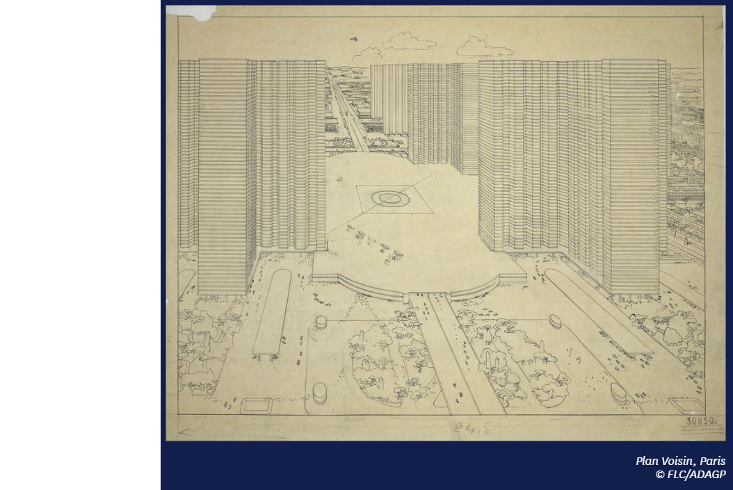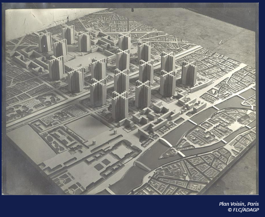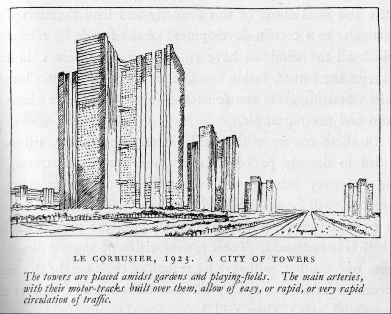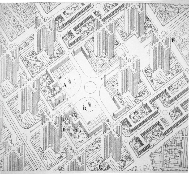 Además de proporcionar los 'placeres esenciales' del sol y la vegetación, se suponía que la ciudad abierta facilitaría la locomoción, de acuerdo con el emprendedor aforismo de Le Corbusier de que “una ciudad hecha para la velocidad es una ciudad hecha para el éxito”. Esto formaba parte de la retórica que acompañaba a la propuesta denominada 'Plan Voisin' para París, de 1925: la paradójica idea de que una vez que el automóvil había conseguido destruir la gran ciudad, podía explotarse como un instrumento para su salvación. A pesar del apoyo financiero de los sectores automovilístico y aeronáutico, Voisin era sin duda perfectamente consciente de la imposibilidad económica y política de levantar enormes torres cruciformes cerca de la Île de la Cité.