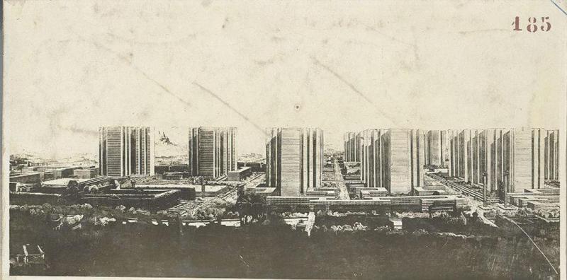 …imposible esperar la lenta colaboración de los esfuerzos sucesivos del excavador, el albañil, el carpintero, el techador, el lampista... las casas deben levantarse en una sola pieza, construirse con máquinas-herramientas en una fábrica, armarse tal como Ford arma sus automóviles, en cadenas de montaje.