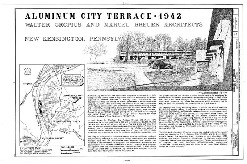Las crisis economicas y politicas en la Europa de los años treinta y las medidas sociales del New Deal de Roosevelt aportaron a los Estados Unidos una intelligentsia de refugiados a la vez que unos extensos programas de reforma y asistencia social. En tanto que el Museum of Modern Art y la Universidad de Harvard desempeñarán los papeles principales en la asimilación cultural de esta migración, el gobierno federal facilitó la base infraestructural para las numerosas tareas de ayuda social que serían ejecutadas entre la Housing Act de Roosevelt en 1934 y la terminación de la segunda guerra mundial. Los más famosos proyectos de planificación y asentamiento del New Deal fueron la Tennessee Valley Authority y las Greenbelt New Towns de Clarence Stein, estas últimas realizadas después de 1936 bajo los auspicios de la Federal Resettlement Administration. A diferencia de los notables embalses, grúas desplazables y diques construidos en el valle de Tennessee, los asentamientos Greenbelt de Stein no fueron agraciados con obras de distinción arquitectónica. Desde este punto de vista, se consiguieron mejores resultados en los pueblos para obreros financiados en el mismo periodo por la Farm Security Administration, con un ejemplo típico en la comunidad agraria de adobe en Chandler, Arizona, construida en 1937 según diseños de Vernon de Mars. Se alcanzó un nivel de vivienda igualmente eficiente y elegante en otros asentamientos financiados por similares entidades gubernamentales, entre ellos el poblado de New Kensington, Pennsylvania, construido en 1940 según planos de Walter Gropius y Marcel Breuer, y Channel Heights, en San Pedro, Los Ángeles, diseñado en 1943 por Richard Neutra. Una obra inexplicablemente desmañada, construida bajo unos auspicios similares, fueron las viviendas Carver Court en Coatesville, Pennsylvania, diseñadas en 1944 por George Howe, Oscar Stonorov y Louis Kahn. Esta obra parece tanto más sorprendente cuando se piensa que Kahn ya había demostrado su capacidad trabajando para Alfred Kastner en las Jersey Homesteads de Hightstown, Nueva Jersey, entre 1935 y 1937.