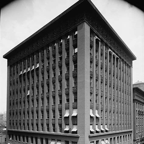 Aparte de Root, Louis Sullivanera el más inclinado a la teoría de los arquitectos de Chicago, y en un ensayo publicado en 1896, titulado ‘El edificio de oficinas en alturas desde el punto de vista artístico’, esbozó sus ideas sobre el rascacielos. Estas reflexiones se basaban en descubrimientos hechos en dos de sus edificios, el Wainwright en St. Louis (Missouri), de 1890-1891, y el Guaranty en Buffalo ( Nueva York),de 1894-1895 (ambos proyectados con Adler), y tenían el carácter de explicaciones a posteriori. Para Sullivan, el rascacielos era el producto inevitable de las fuerzas sociales y tecnológicas, un tipo verdaderamente nuevo en busca de su morfología apropiada. Armado con ideas derivadas de Viollet-le-Duc, Semper, Greenoughy otros, Sullivan solía observar la situación en términos ‘orgánicos’, lo que significaba que la función debía tener una identidad inherente y específica en lucha por lograr una expresión directa y honrada; describía los elementos del problema de un modo pragmático (una porción inferior para las tiendas y la entrada, una entreplanta, un apilamiento repetitivo de oficinas, un espacio para la maquinaria de los ascensores en lo alto, un núcleo para la circulación vertical y un entramado para la estructura) y decidió que esta disposición funcional conducía ‘naturalmente’ a un división tripartita de basamento, cuerpo intermedio y remate. Más allá de la función estaba la expresión, y Sullivan decidió que el rascacielos debería tener un énfasis vertical: